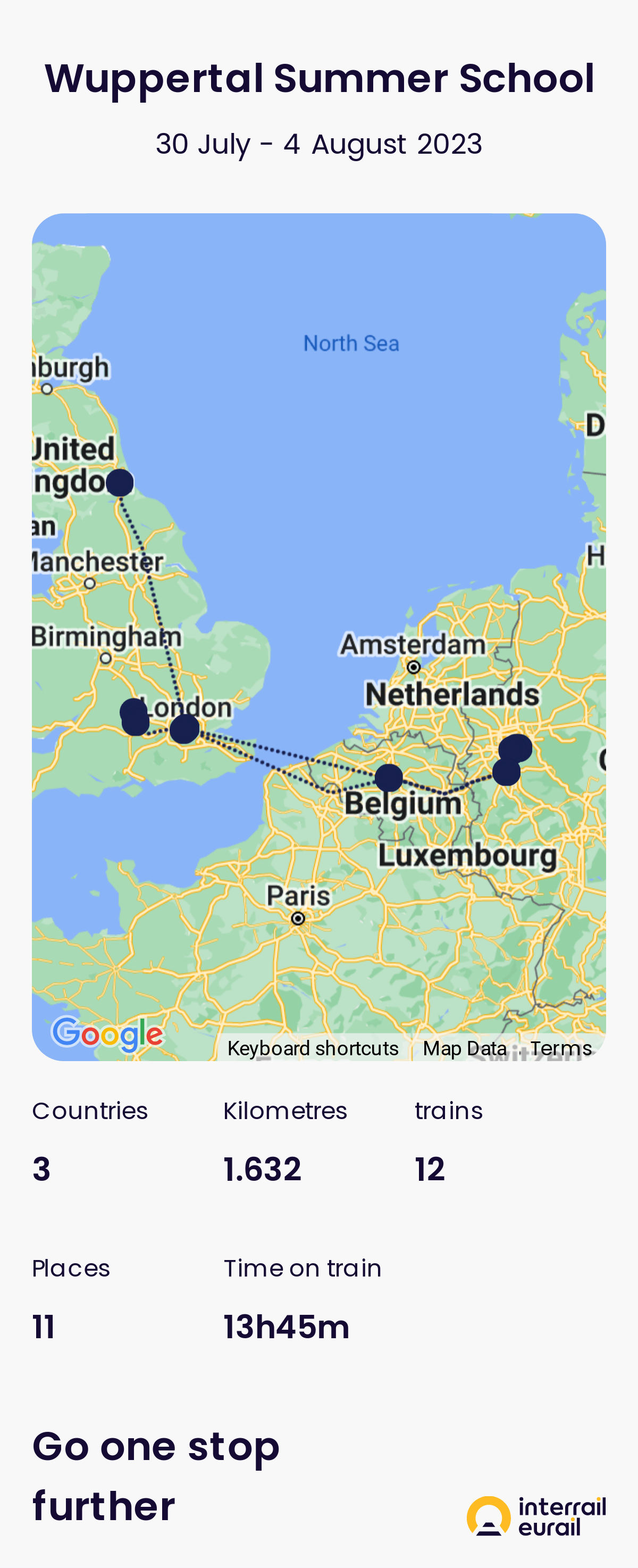 Bonus journey: Wuppertal, famously it seems, has a monorail. Whilst it wasn't useful for travelling to the university from our hotel, it was a pleasant way to see the city on a free afternoon. (And the journeys were included with our Interrail passes!)