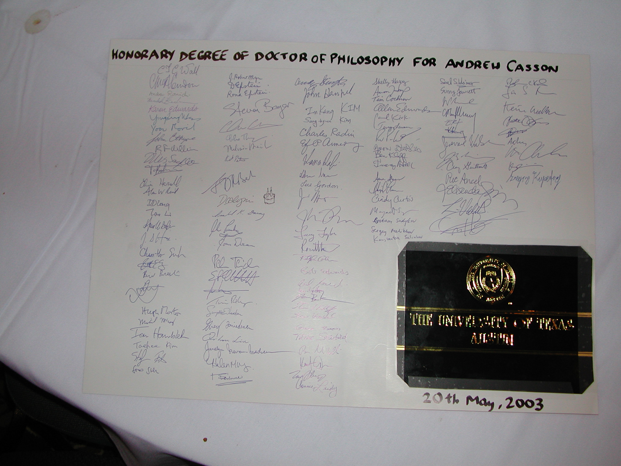 Photos from the Andrew Casson 60th birthday Conference, Austin, Texas, May 19-21, 2003